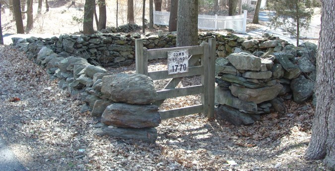 For example, the image above shows the Sherborn town pound, originally built to confine loose animals and preserved as a vestige of the rural past. Another once-common stone building was a root cellar, as the site explains: